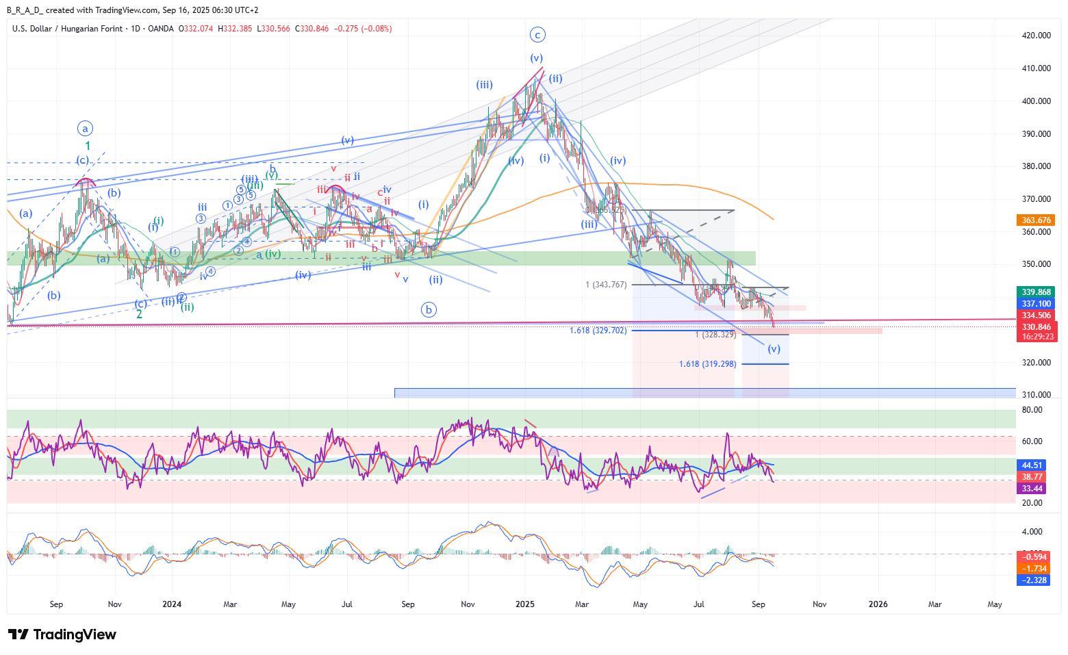 A következő időszakban emelkedésre számítunk, az elsődleges célár 333,80, a másodlagos 335,95.